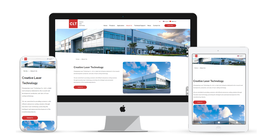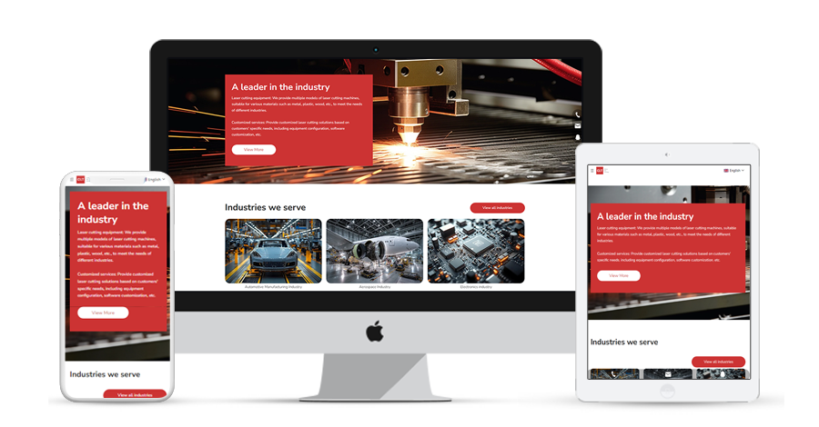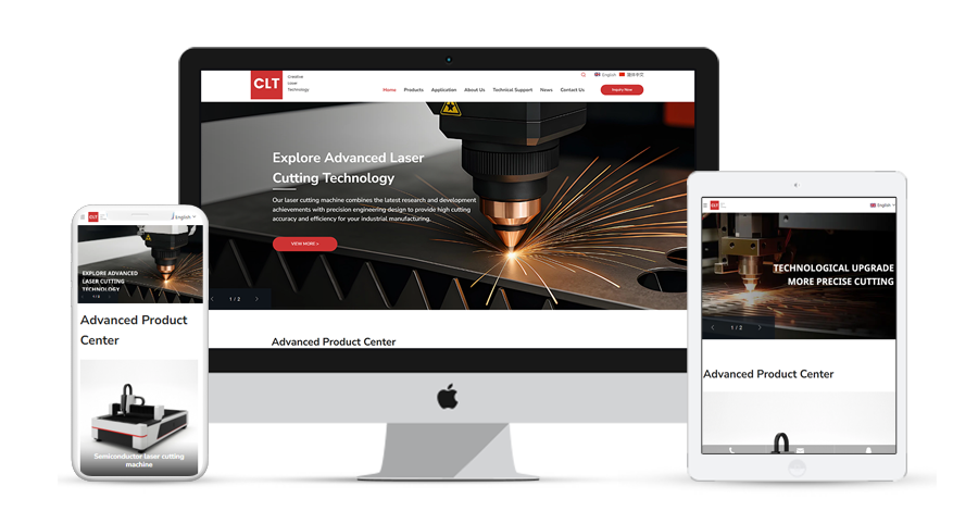 描述:网页以蓝色为主色调,搭配白色辅助色,营造出专业、科技且稳重的视觉效果,符合工业产品行业属性。页面简洁大气,突出关键信息,同时通过现代工业风格的图片和特效强化科技感,展现出专业形象。整体风格商务正式,传递出可靠、值得信赖的企业形象。网页重点展示激光切割机的高精度和高效率,强调技术创新和合作应用,满足制造业需求,推动行业发展。