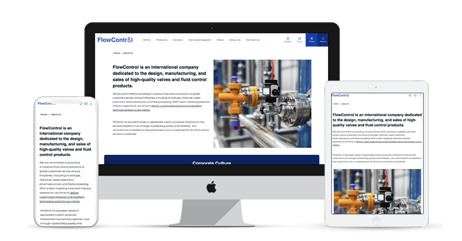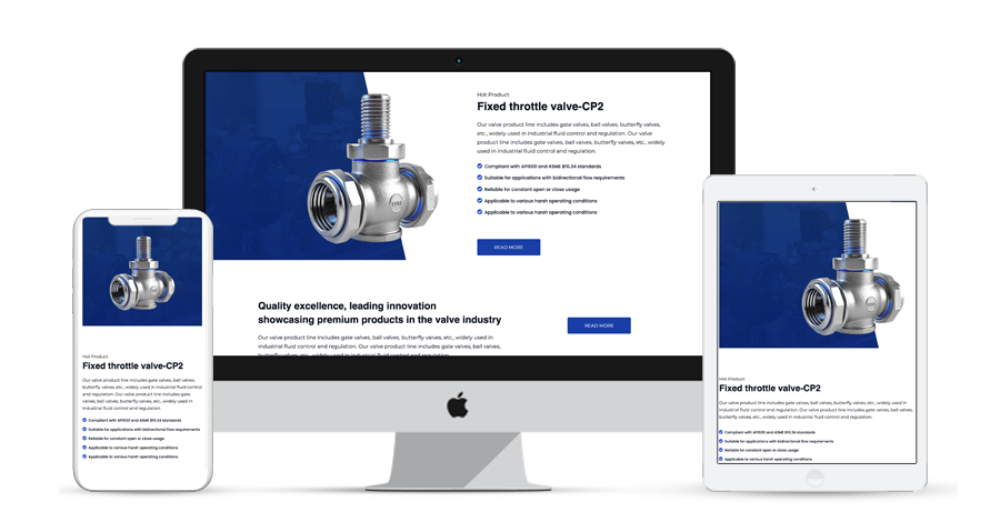 描述:以阀门产品为网站主题素材,简约明了的设计风格,采用Helvetica清晰易读的字体,标题加大字号可以突出重点,简洁明快的配色方案体现欧美风格,同时有着清晰的布局和明确的层次感。 详细的产品信息,包括产品的材质、工艺、性能参数等,帮助用户做出询价决策。